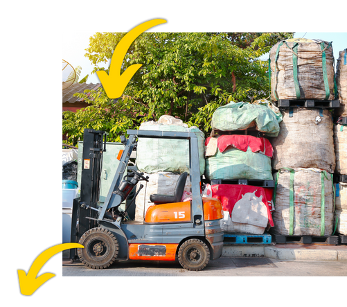 Equipos electrónicos, Chatarra, Cartón, Papel, Tapas plásticas, etc.